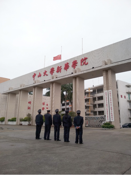 4月4日7时起,中山大学新华学院穗莞两个校区分别下半旗志哀。