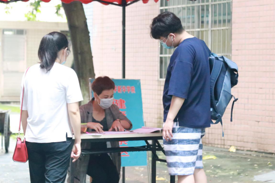 中大新华2020年春季学期首位同学返校啦,辅导员们在新华门指引学生入校。小安同学作为本学期开学的第一个返校学生,看到学校为返校学生所做的一切准备感到十分暖心。