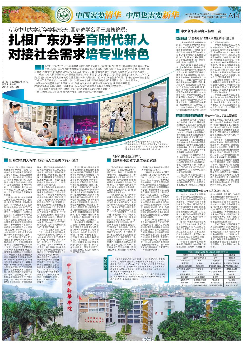 专访中山大学新华学院校长、国家教学名师王庭槐教授:扎根广东办学育时代新人 对接社会需求培专业特色