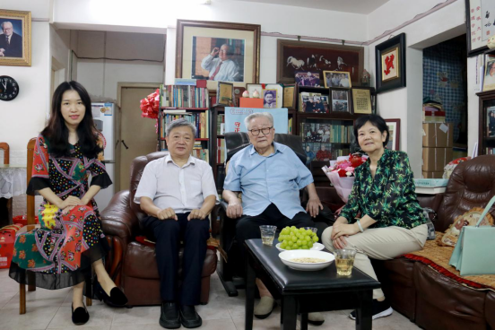 王庭槐校长(中左)、周云书记(右一)、刘霖霖校长助理(左一)拜望夏书章教授(中右)并送上节日祝福