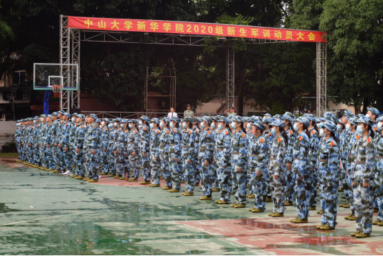 中山大学新华学院2020级新生军训动员大会现场