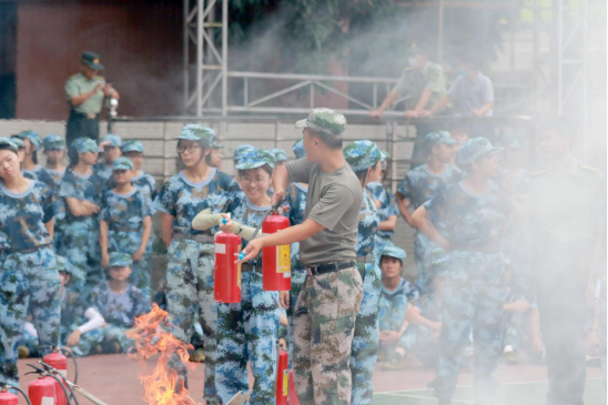 教官向同学们进行灭火器使用说明讲解