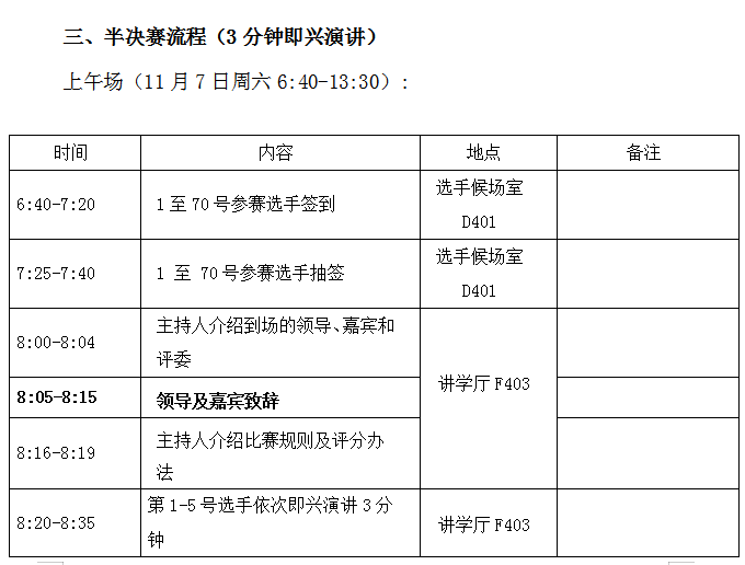 演讲大赛安排如下: