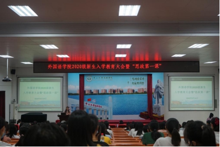 9月14日,外国语学院2020级新生入学教育大会暨“思政第一课”顺利举行。外国语学院党总支书记秦荔以“弘扬抗疫精神 点燃灿烂青春”为主题开讲“思政第一课”。外国语学院执行院长廖益清讲授了以“批判性思维与语言学习”为主题的“思政第一课”,希望同学们能够慎守校训,保持独立自主的思考,努力成长为“了解世界文化、传递中国声音、服务区域经济”的新时代人才。