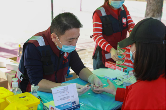 活动现场,麻涌镇疾控中心的宣传台摆放了关于艾滋病的宣传教育手册、HIV试剂盒等宣传材料,供同学们浏览学习。同时,为了促进同学们对艾滋病的了解,活动现场疾控中心的工作人员用HIV试剂盒对他们进行了抽血检查并积极解答他们的疑惑。通过宣传活动,同学们认识到参与防艾的重要性,并表示会树立健康理念和养成良好生活方式。