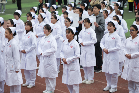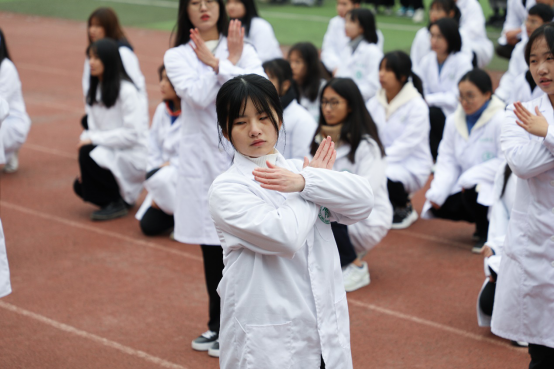 铿锵有力的步伐凝聚着青春的力量,生物医学学子用短暂的表演向我们展示了医患之间的温暖相处。