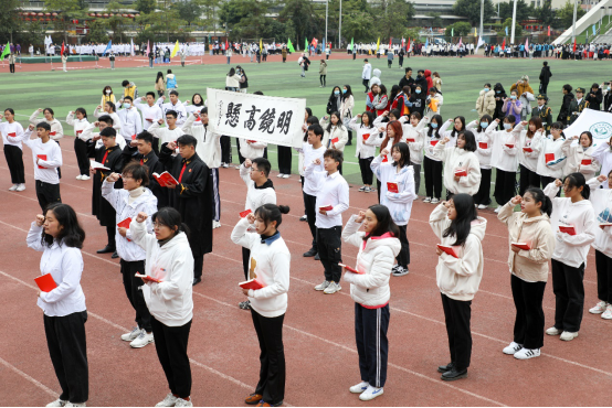 哨声响起,集结成队。“秋日飒爽天气佳,公治争把第一拿”更是彰显他们的坚毅和对比赛的信心。整齐的队形和变换的队列展现学子风采。