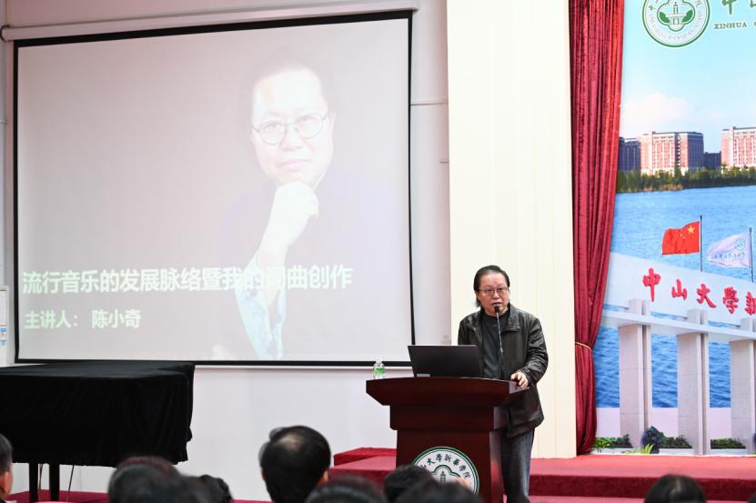 陈小奇讲授以“流行音乐的发展脉络暨我的词曲创作”为主题的学术讲座。他以音乐发展史为线索,介绍了中西方音乐的不同之处,将流行音乐的发展历程娓娓道来,引导同学们突破时空束缚,用心感受古典音乐和流行音乐的独特魅力。