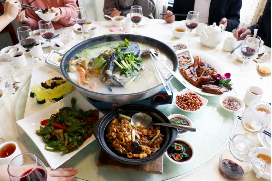 留校学子与师长校领导共享丰盛家宴欢度暖心除夕