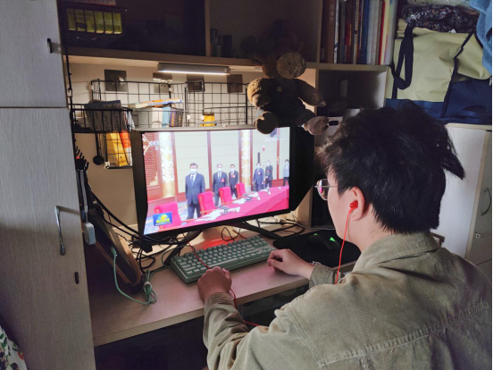 经济与贸易学院2020级曹源林同学在宿舍在线学习