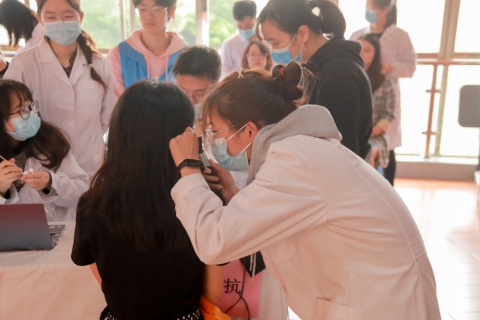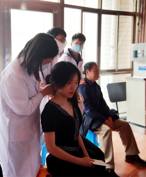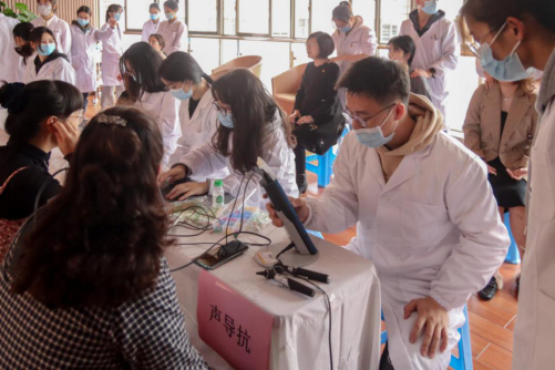 本次健康服务团队由康复医学系、听力与言语科学系教师代表和“康复医学系梦之翼志愿队”“听力与言语科学系启音志愿服务队”组成,开展了肩颈理疗,艾灸调理,手法放松,外耳、中耳检查,听力年龄测试、量血压及健康咨询等多项服务。