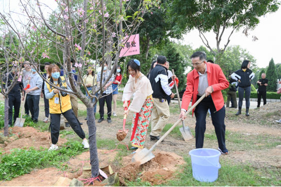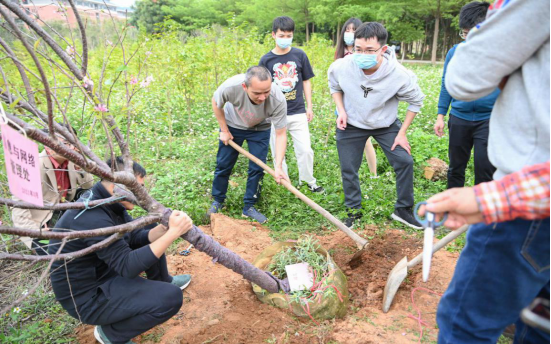 在植树前,王校长阐释道樱花是希望的象征,樱花最早诞生于中国的喜马拉雅山东部,随后漂洋过海,把美好寓意洒向四方。今年是中国共产党建党100周年、“十四五”开局之年,也是我校转设迈上新台阶的开局之年。在万物复苏的阳春三月,在新学期伊始,我们师生相聚一堂,开展校园植树活动,用双手种下希望,培育出新生命,这寓意着师生勠力同心为学校办学育人事业根植茁壮成长的希望、培植繁荣发展的生机。正所谓“十年树木,百年树人。”教育的根本在于立德树人,树人的根本在于立德。希望参与活动的教职工能深刻领悟“种树”与“树人”之间的逻辑关联和深层寓意,在新的起点上继续坚持“学术强校、质量立校、特色兴校、开放办校”办学方略,以“四有”好老师标准严格要求自己,恪尽立德树人、服务育人的职守,在广州新华学院培育出更多德才兼备、知行合一的优秀学子。相信大家“今日种下的树苗与希望,就是明日的社会栋梁。”