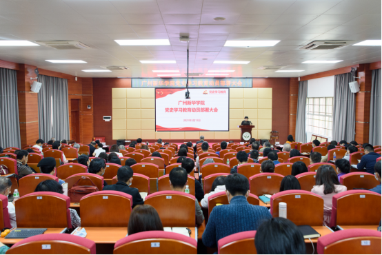为深入学习贯彻习近平总书记在党史学习教育动员大会上的重要讲话精神,全面贯彻落实中央、省委、省委教育工委关于开展党史学习教育的部署,3月12日上午,广州新华学院(以下简称“我校”)于广州校区教学楼D101讲学厅召开党史学习教育动员大会。党委书记周云作动员讲话,校长、党委副书记王庭槐主持会议。会议对我校接下来在全校师生中全面开展党史学习教育作了总体部署,对全校师生学党史、悟思想、办实事、开新局提出了明确要求。