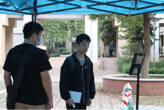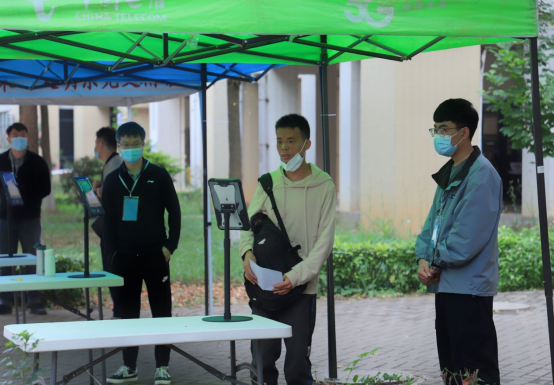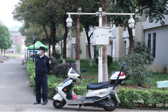 考试期间,我校在各大考点配备了人脸识别系统、隔离考场、临时医务室等设施、场所。既贯彻落实了常态化疫情防控措施,又保障了考务工作与后勤工作的有效运转。其中,2021年配置的人脸识别系统在简化验证程序的基础上,极大地提高了我校考务工作的效率。此外,学校严格推进人员分流措施及校内交通管制等安保工作,配置治安巡逻队伍维持校内秩序,为考生营造了良好、安全的考试氛围。