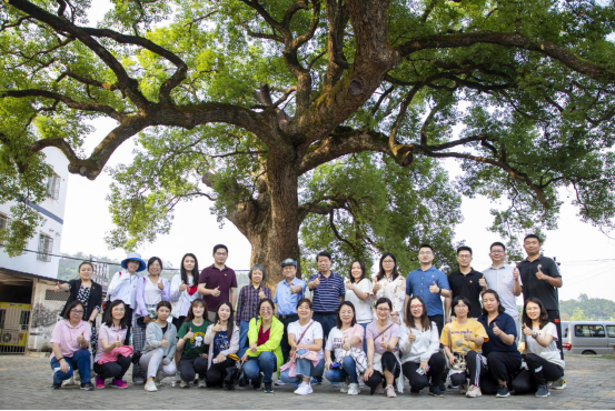 广州新华学院革命传统教育专题培训班学员在叶挺将军当年休憩的古树下合影