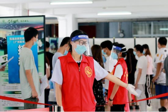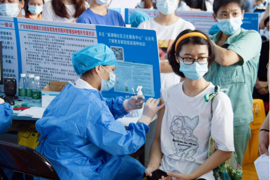 疫苗接种现场,医护人员认为广州新华学院的同学具备当代青年大学生的文明素养,遵守现场工作人员的指挥与安排,按照规定、安排的时间有条不紊地排队进行接种。