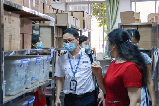 为确保严守疫情防线,落实落细疫情防控措施,维护平安健康校园,6月10日,由天河区新冠肺炎疫情防控指挥部办公室教育防控组带队,联合区卫健局、市场监管局、街道等有关部门组成的联合督查组对我校广州校区疫情防控各项工作进行实地指导。我校疫情防控办公室成员及相关职能部门负责人陪同检查,并与联合督查组进行座谈交流。