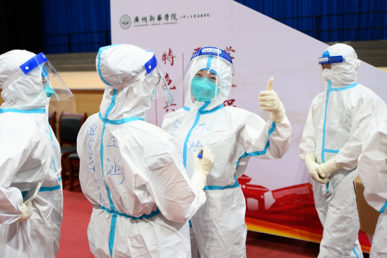 严密的防护服和防护口罩虽然遮住了医护人员的容貌,但他们无私奉献的精神却已深深地刻在每一位广州新华人的心中。