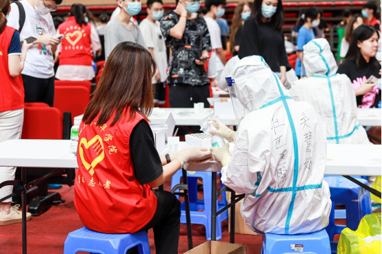 “我不用服务时数,随时待命!”18日22时,随着疫情防控形势迅速紧张,广州新华多名学生志愿者主动提出支援核酸检测工作。