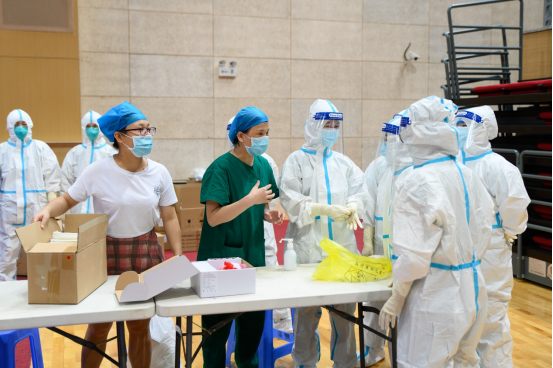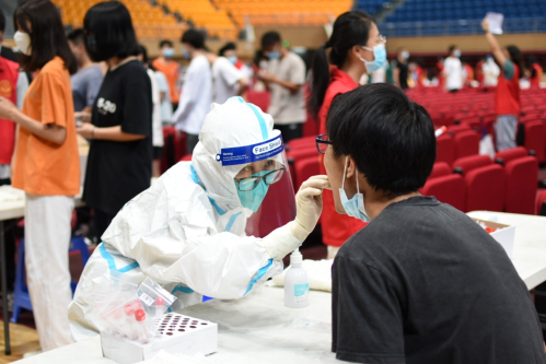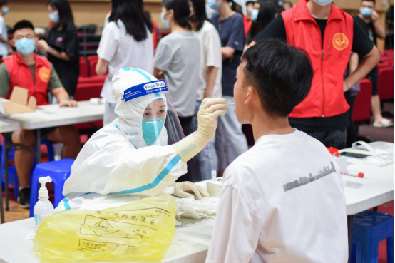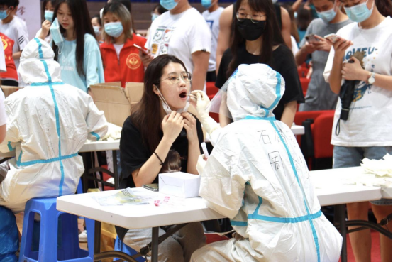 广州新华学院根据属地政府紧急部署6月19日凌晨起全面组织东莞校区师生员工和家属开展全员核酸检测工作。经过2个小时的紧张准备,医护人员从凌晨4时开始采样,历经6个小时,1.66万余名师生员工和家属立即响应政府号召有序完成全员核酸采样工作。