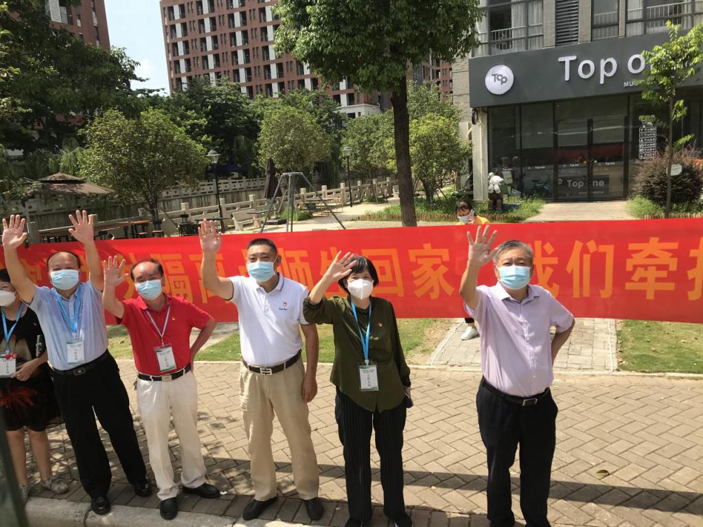 学校以及院系领导班子、辅导员等在校园欢迎校外各隔离点师生返校