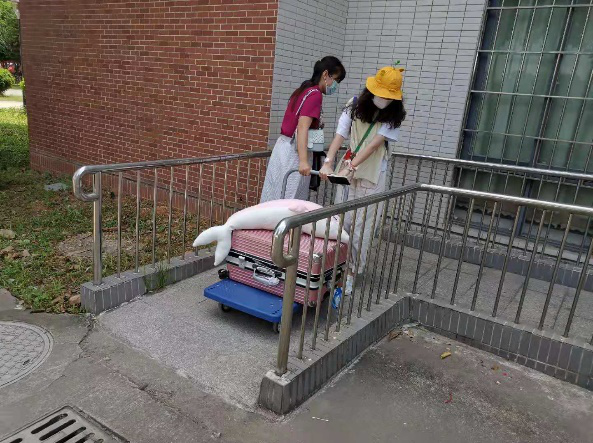 徐文俊院长把毕业证一对一颁发至毕业生所在宿舍,为返校学子提供暖心服务