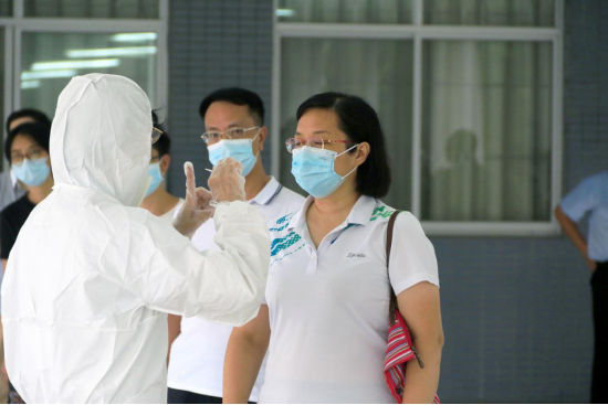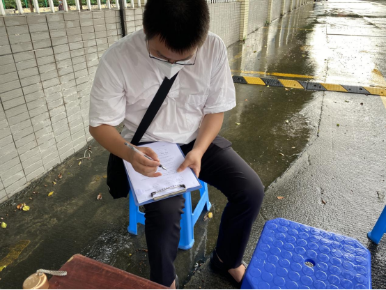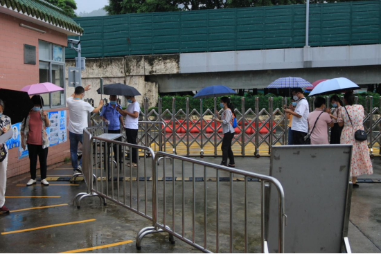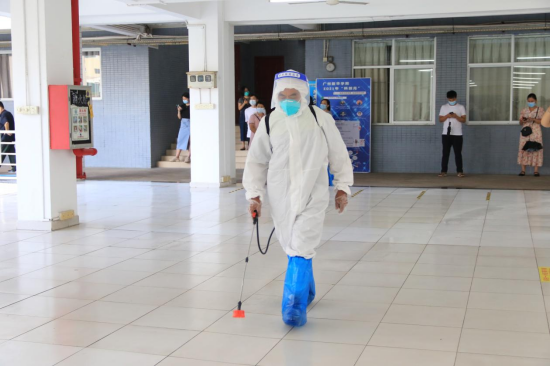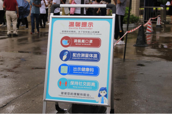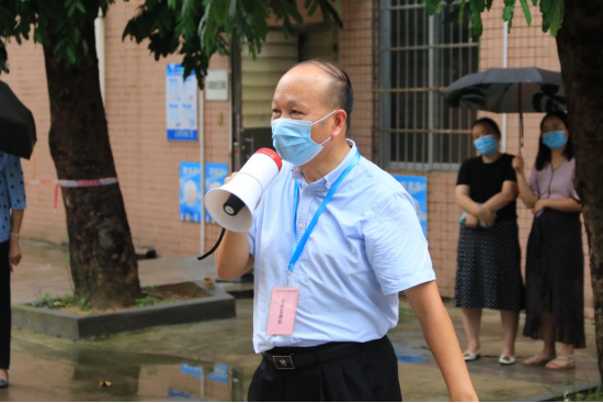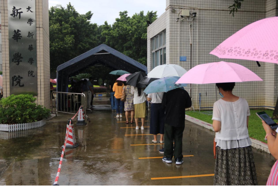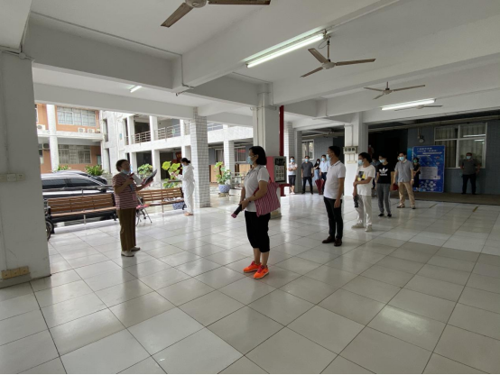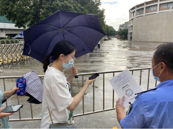 8月15日下午,我校在广州校区冒雨开展疫情防控应急演练,根据预先制定的方案,分别模拟三种场景进行应急演练:返校学生进校园时体温异常、课堂教学过程体温异常、学生宿舍突发体温异常。