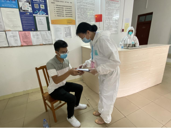 学生体温异常自感不适,医护人员为发热学生进行台账登记和健康监测