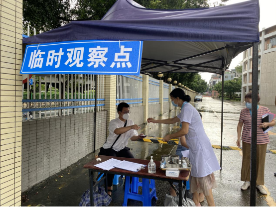 体温异常者分流至临时观察点进行再测体温