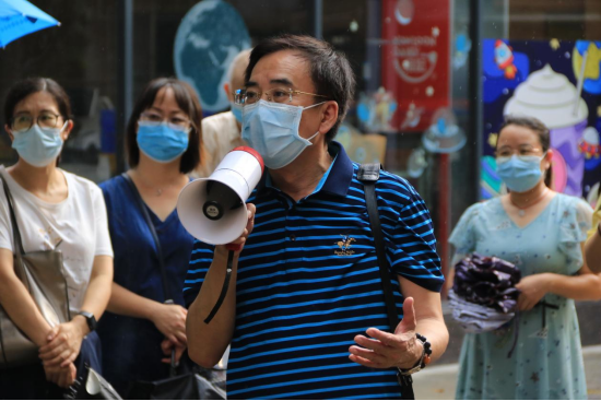 教学区演练场景结束,王庭槐校长带领工作人员前往下一场景演练