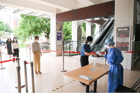 8月15日下午、8月16日上午,我校分别在广州、东莞两校区开展秋季学期开学疫情防控应急演练。根据预案,对师生员工返校时在校门口出现发热人员、课堂教学中出现发热人员、在学生宿舍出现发热人员、在学生食堂发现发热人员四个出现突发疫情情况的模拟场景进行应急演练。