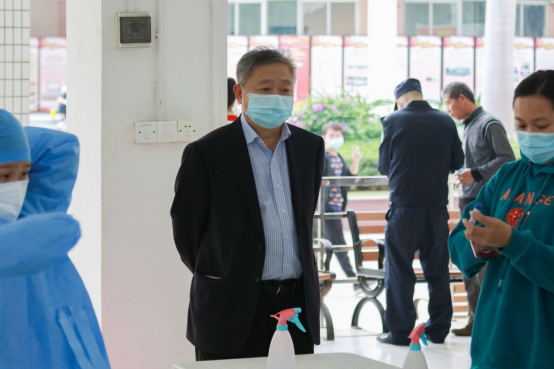 学校党委副书记、校长王庭槐检查师生集中核酸采样情况