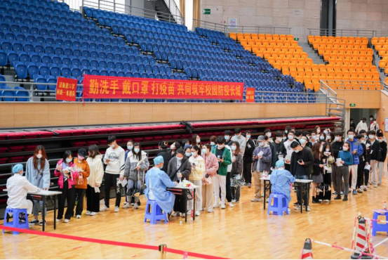 学校防控办、校长办公室、总务处、校团委、学生处、信息网络中心、人力资源管理处等部门紧密联动,积极配合市防控办与医院要求开展场地布置、物资搬运、维持秩序和组织动员等工作,为本次疫苗接种工作的有序开展提供支持。宣传部、学工部和各院系积极配合加强针接种动员工作,通过推文宣传、主题班会等方式倡导在校师生积极参与活动,全力提高疫苗接种率,协力共筑校园防疫长城。