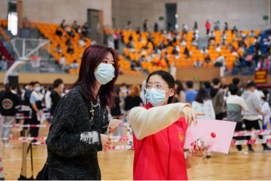 疫苗接种现场共设置科兴和生物两处疫苗供应点,为具不同需求的师生提供接种服务。场地严格按照操作规范进行规划,共布置了10处接种点,设有健康咨询区、信息登记区、接种区、留观区等功能区。