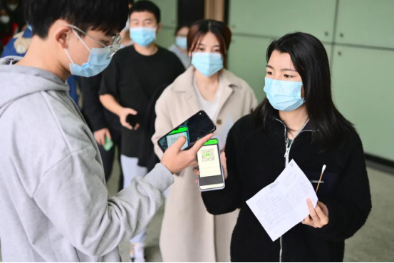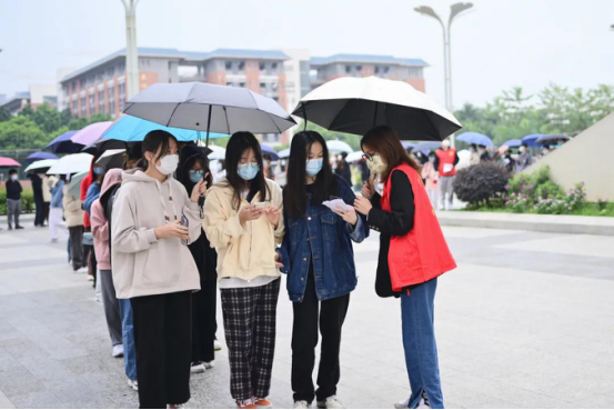 在雨天里,志愿者为接种师生贴心准备了收纳雨具的塑料袋,这给19级会计学专业的苏彤(左一)留下了深刻印象。在此,她想对志愿者们说:“辛苦你们了,你们是最棒的!”同时,她也深刻认识到了此次加强针接种活动的重要意义,“年关将近,接种疫苗不但加强了师生的防疫能力,而且能够助力全市乃至全国的防疫工作。”