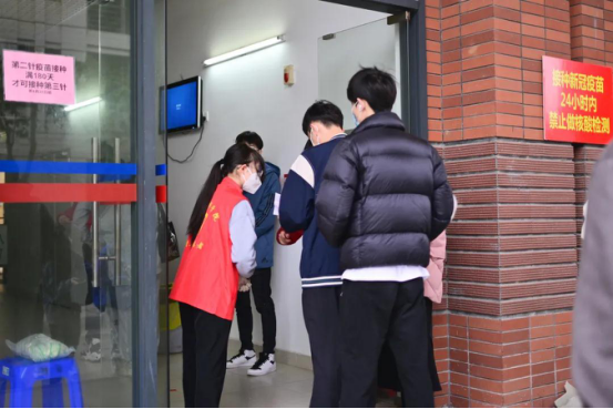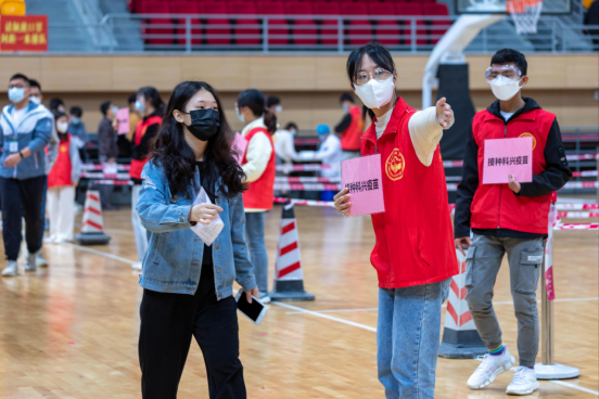 在接种完疫苗后,20级英语专业的徐婉倩(右一)感触良多:“此次我校的疫苗工作安排合理,现场布置有序,志愿者们也非常认真,可以看出学校对师生安全的关心与呵护。”面对当下严峻的疫情形势,她认为全民应当做到“应接则接”,接种了加强针之后,才能够更有效地保持身体对病毒的免疫力。