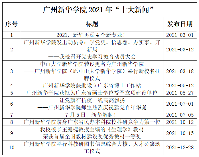 广州新华学院2021年“十大新闻”评选结果揭晓