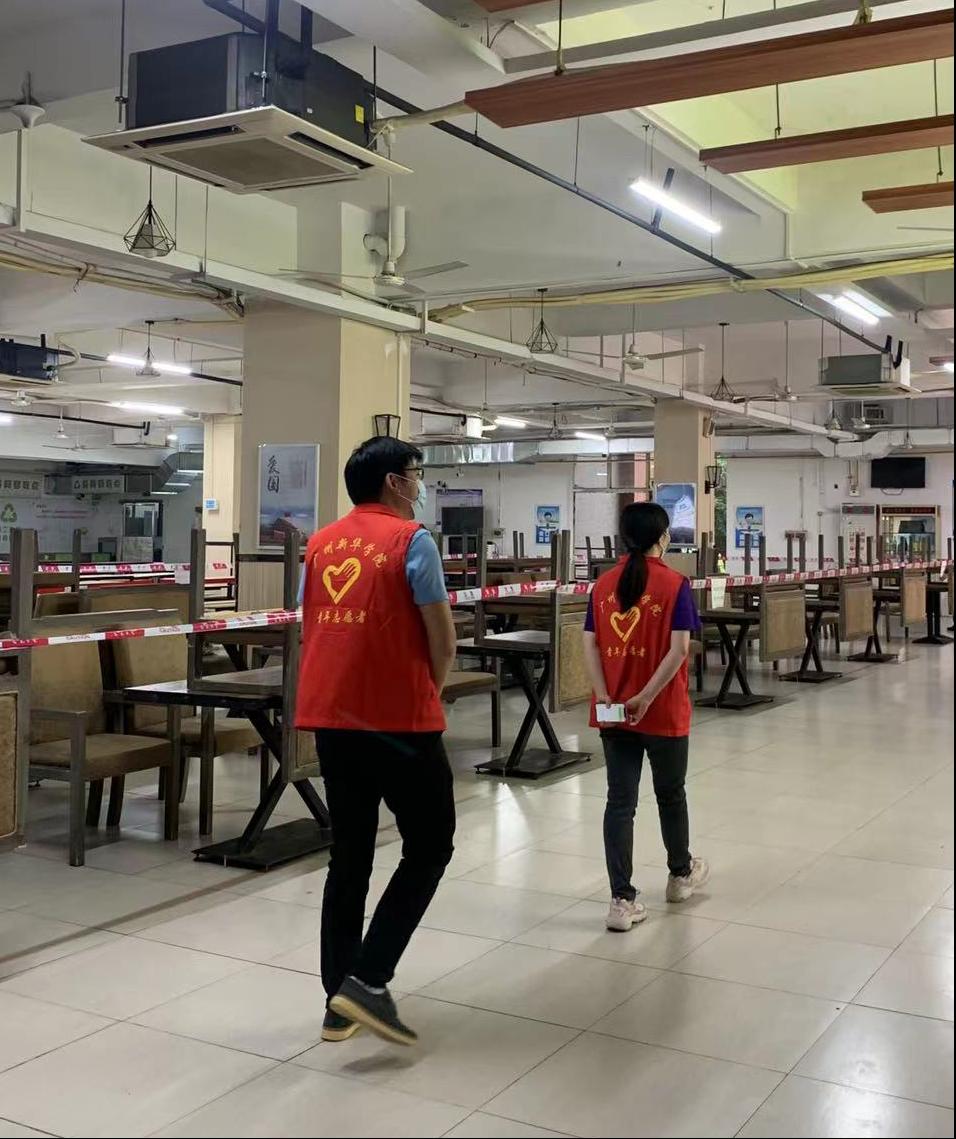 根据省、市、镇各级疫情防控工作要求,结合防控形势,我校从严、从紧、从快落实落地疫情防控措施:一是校内各食堂不提供堂食,鼓励师生错峰前往食堂打包,带回宿舍用餐;二是二级单位对校内公共区域“分片包干”,组织纠察队巡查督促师生在公共区域科学佩戴口罩;三是加强校门及围栏管理,在校门处设置安全区,杜绝外卖进校园,减少校外疫情输入传播风险,加高校园围栏,对违反疫情防控管理规定的师生严肃处理;四是对师生员工外出就医进行分级管理,确需外出就医的返校须进行为期三天的健康观察,并按要求完成“一日一检”。
