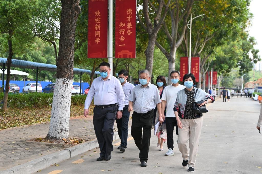 3月20日上午,麻涌镇党委委员黄伟雄、教育管理中心主任曹梅以及市场管理监督分局相关同志一行莅临我校东莞校区督查疫情防控工作。黄伟雄一行实地检查了我校校门、食堂,和核酸检测现场,对学校立行立改工作和心理健康教育工作表示满意,并提醒我们要进一步落实餐桌隔板和一米线标识,做细做实相关工作。他表示,校园作为当前疫情防控的重点场所,学校领导及师生要切实增强紧迫感和责任感,把疫情防控作为当前的头等大事来抓。麻涌镇政府将切实履行属地管理责任,加强校地防疫协作,全力配合学校疫情防控工作要求,形成联防联控“一张网”。