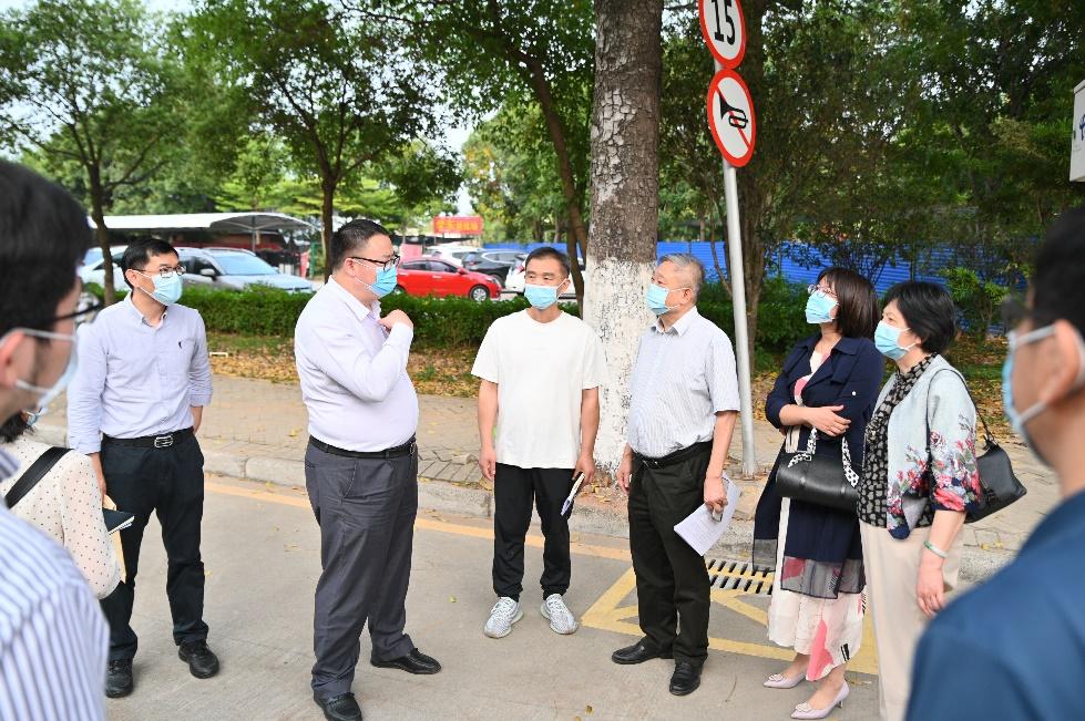 近期,国内疫情防控形势严峻复杂,学校疫情防控工作面临巨大挑战。为扎实做好校园疫情防控工作,筑牢校园疫情防控防线,3月19至20日,广东省教育厅二级巡视员曾声海、德体卫艺处三级调研员董业权、东莞市教育局三级调研员高万军、基信科副科长刘晓东,东莞市人民政府副秘书长翟现春、市人民政府主任督学杜润江、市人民政府教育督导室主任万妙家、市疾控中心免疫规划所所长陈绍丽相继莅临我校东莞校区督查指导校园疫情防控工作。