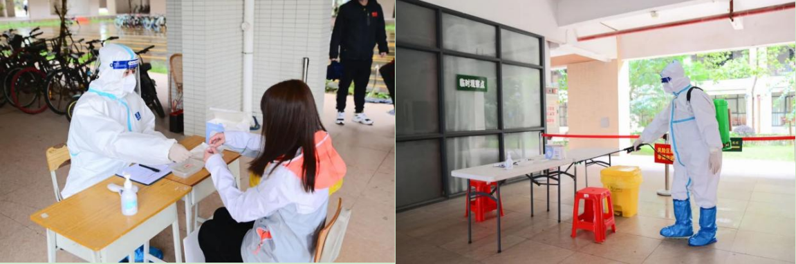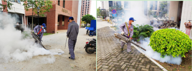 总务处对防疫物资储备、校园各场所通风消毒、核酸检测、快递和冷链食品管理、人员管理等后勤服务保障重点疫情防控工作进行了周密的部署和安排。3月14日和29日,总务处安排专业消杀团队,对校园食堂、学生公寓、教学楼、垃圾堆放点、快递点等公共区域进行了全范围覆盖的“除四害”和消毒作业。
