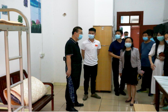 检查组一行在学生宿舍、健康观察区、实验室、食堂后厨、快递收发点等进行安全检查