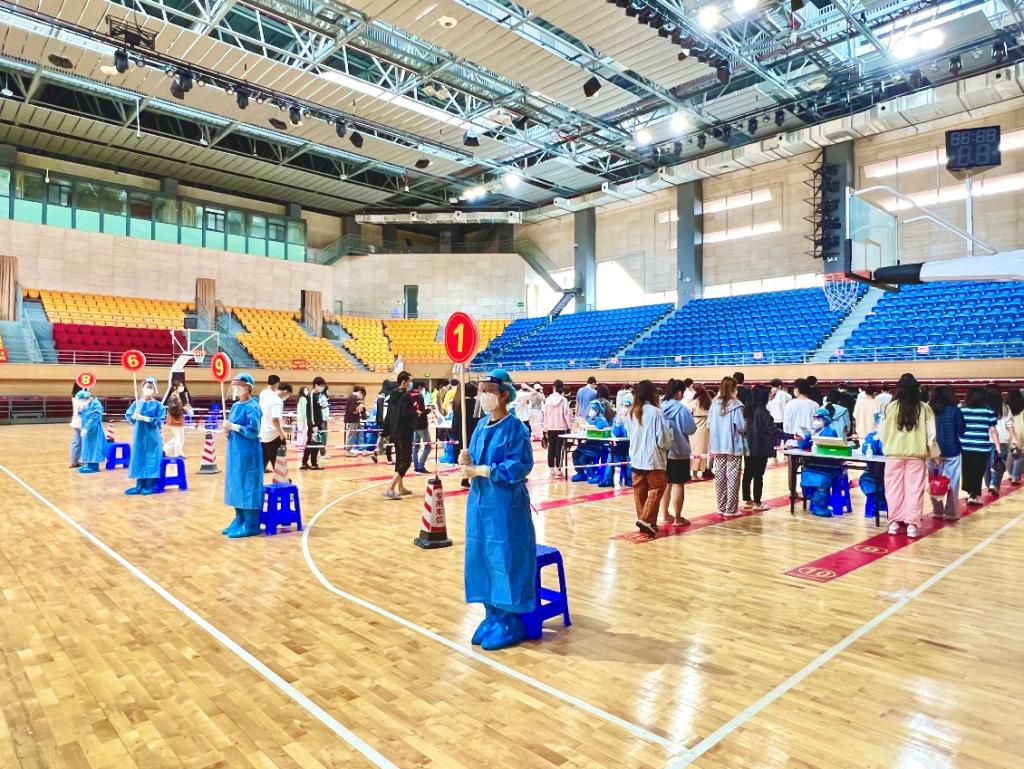 各职能部门、院系工作人员、师生志愿者分工明确,采样现场有序高效;假期留校师生及教职员工积极配合,核酸检测现场秩序井然。核酸采样区域出口处,师生扫描iXH健康码或登记身份信息后离场,切实做到“应检尽检,不漏一人”。