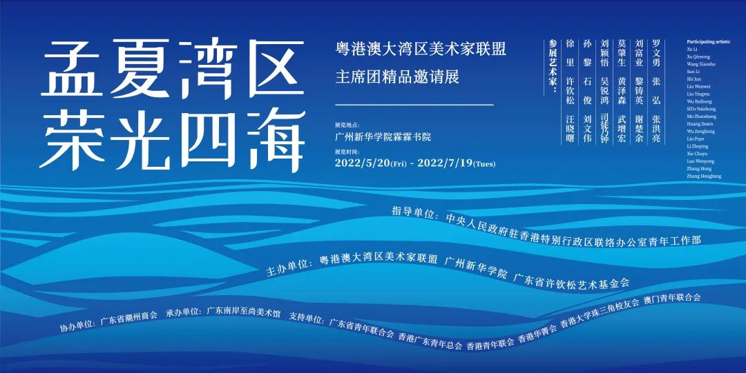 本次展览得到了中央人民政府驻香港特别行政区联络办公室青年工作部的悉心指导,广东省青年联合会、香港广东青年总会、香港青年联会、香港华菁会、香港大学珠三角校友会、澳门青年联合会的大力支持;由粤港澳大湾区美术家联盟、广州新华学院、广东省许钦松艺术基金会主办,广东省潮州商会协办,广东南岸至尚美术馆承办。