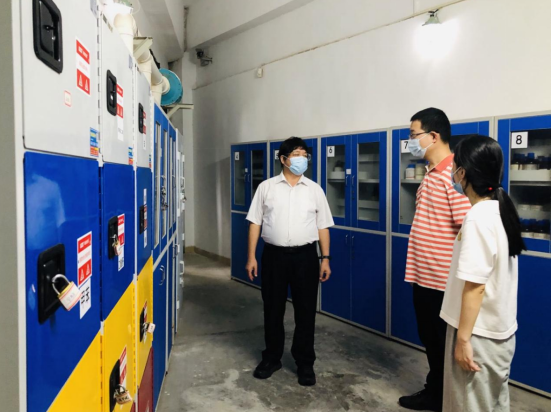 针对暑假期间实验室安全管理工作,姚正安副校长在检查时重申了四点要求:一是要严格落实放假前应当完成的工作任务,严格管理危险化学品,假期做好实验室断电、断水、门窗关闭等安全措施;二是暑假期间,各实验室应安排人员每日巡查,确保实验室安全,并重点关注化学品及废弃物等具有低温储存、通风良好等特殊要求物品的存储安全,确保不因断电等情况造成安全隐患;三是暑假期间如确因工作需要继续使用的实验室,必须严格按照《关于做好2022年暑假期间实验室安全管理工作的通知》的相关规定执行;四是要做好假期期间实验室安全预案执行部署工作,如遇突发事件和异常情况,要按照预案采取积极有效的应急措施,并及时上报相关职能部门。