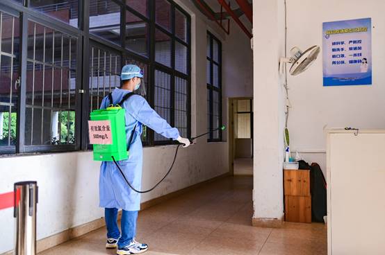 工作人员对发热学生经过及停留地、临时观测点进行消杀