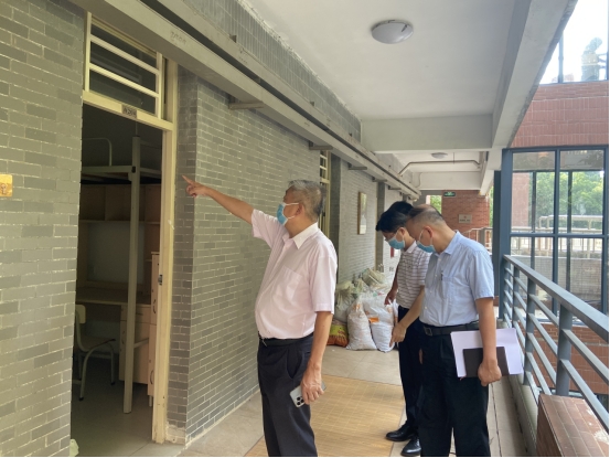 为了进一步落实学校关于迎新工作的安排和部署,确保2022级新生顺利入住宿舍,努力打造温馨有爱、整洁舒适的住宿环境,9月2日下午,广州新华学院(以下简称“我校”)校长王庭槐、党委书记郝登峰、校长办公室主任黄立文带领总务处、保卫处等部门对东莞校区新生宿舍进行检查。