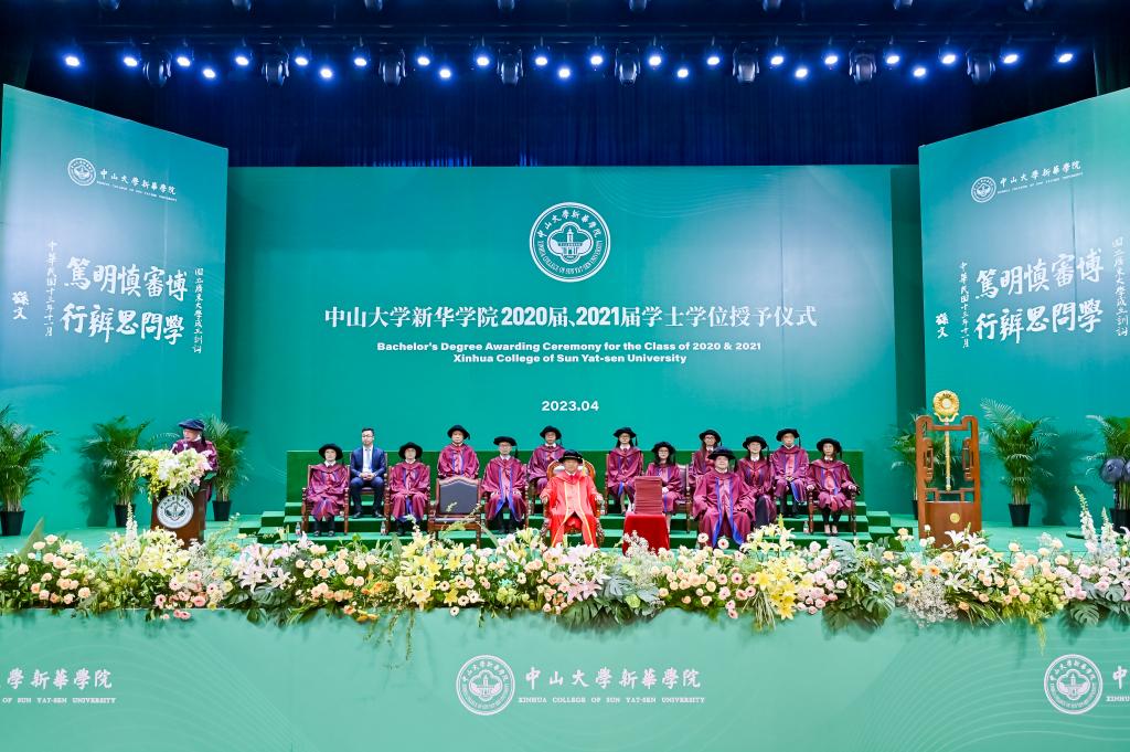 王庭槐校长在这次仪式上整整站了2天,战胜了体力上的挑战。我在现场看到也为之感动。在此,我谨代表学校董事会向出席这次仪式的所有主礼教授、院系的教授学者们,以及现场的所有工作人员、教职员工们表示由衷的感谢。与此同时,我还要为到学校参加补办仪式和在网上观看直播的所有新华学子、学生家长及社会朋友们送上最诚挚的祝福和最衷心的感谢。正是有你们的努力付出和信任支持,广州新华学院才能有更高质量的发展,也才能培育出更加优秀的让社会更加满意的服务于粤港澳大湾区的复合应用型人才!