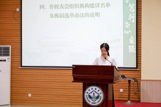 校友会秘书长黎安琪作第二届理事会候选人名单产生过程及换届选举办法的说明