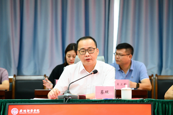 蔡琛在开班动员讲话中对广州新华学院在对口帮扶工作中给予的指导和帮助表示感谢。他表示,在广州新华学院的帮扶下,南澳县基础教育各学校在办学实践中大胆探索、勇于创新,逐渐形成了独特的办学特色。蔡琛对参与此次研修班的学员提出要求:希望大家进一步提高思想认识,深刻领会本次研修的必要性、重要性和紧迫性;转变学习理念,提升南澳县教师队伍素质;珍惜学习机会,圆满完成培训任务。祝愿各位老师学有所获、学有所悟、学有所用,共同为南澳县基础教育的发展贡献力量。